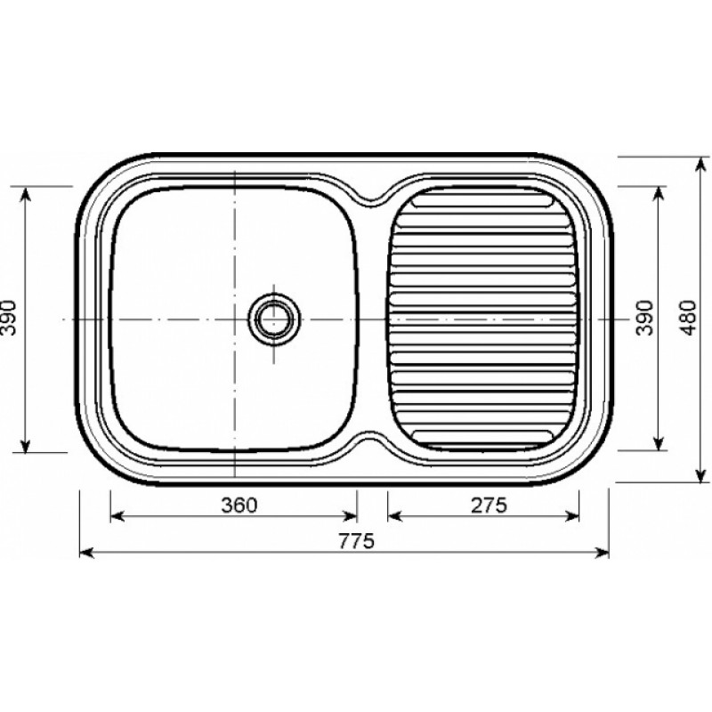 Velikost dřezu: 775 × 480 × 160 mm