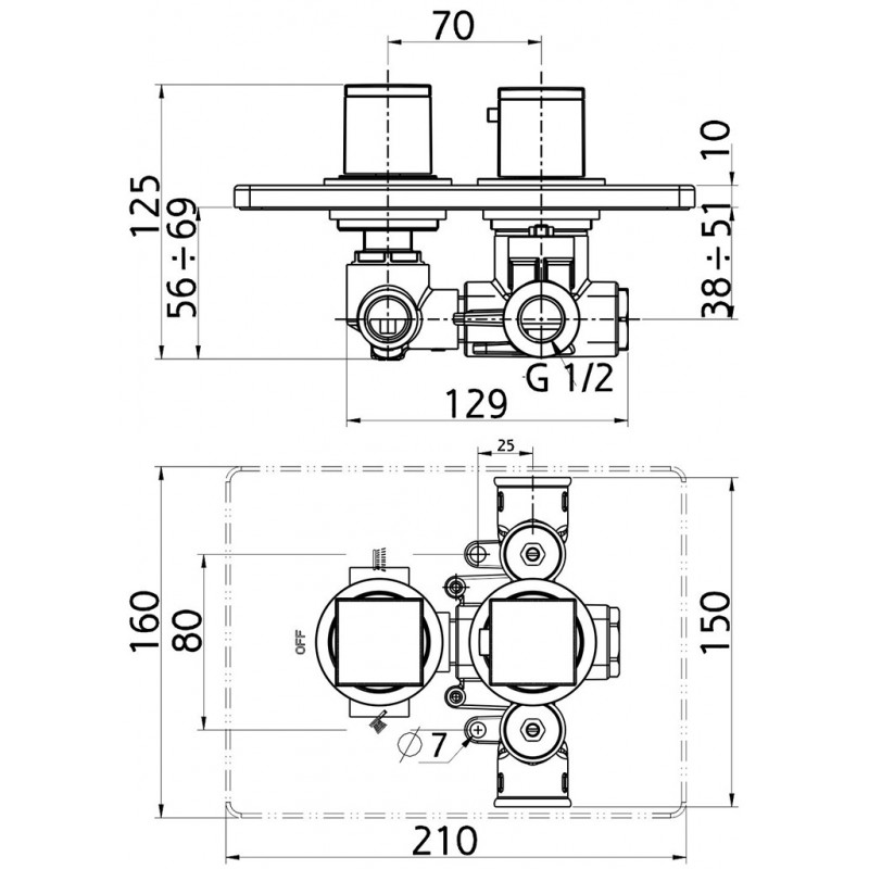 NOVASERVIS AQUASAVE sprchová termostatická baterie, 2-cestný ventil, chrom 2850R,0Typ:podomítková