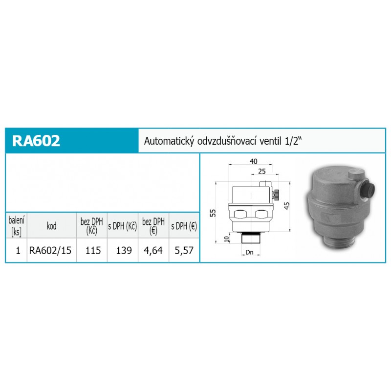 - Pre odoslanie na Slovensko navštívte NOVASERVIS automatický odvzdušňovací ventil 1/2 "RA602/15