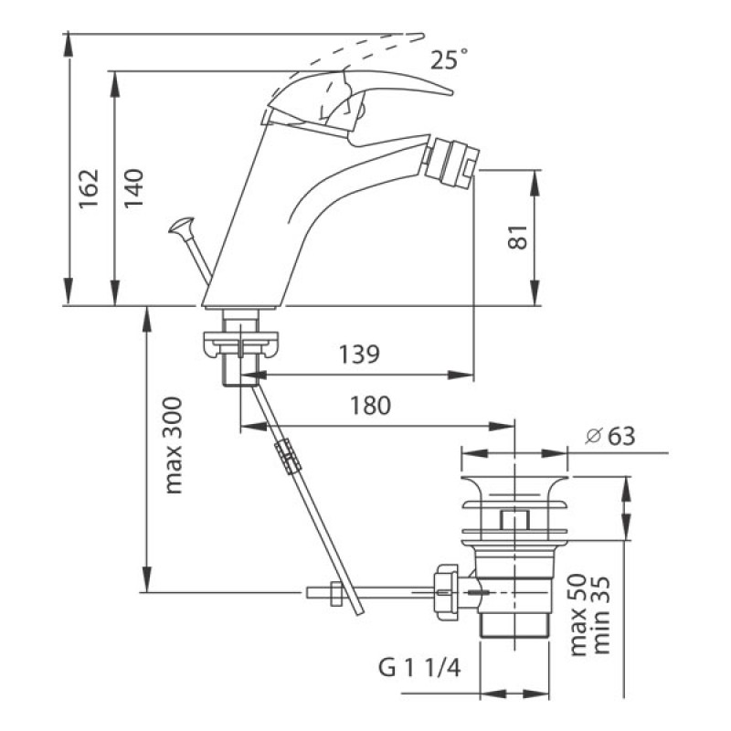 NOVASERVIS FERRO Ancona stojánková bidetová baterie chrom 72011,0Baterie s uzávěrem výpusti 5/4“.