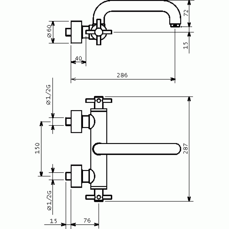 NOVASERVIS LA TORRE BI - TECH CROSS dřezová/umyvadlová nástěnná baterie chrom 150 mm 14070,0Provedení: chrom