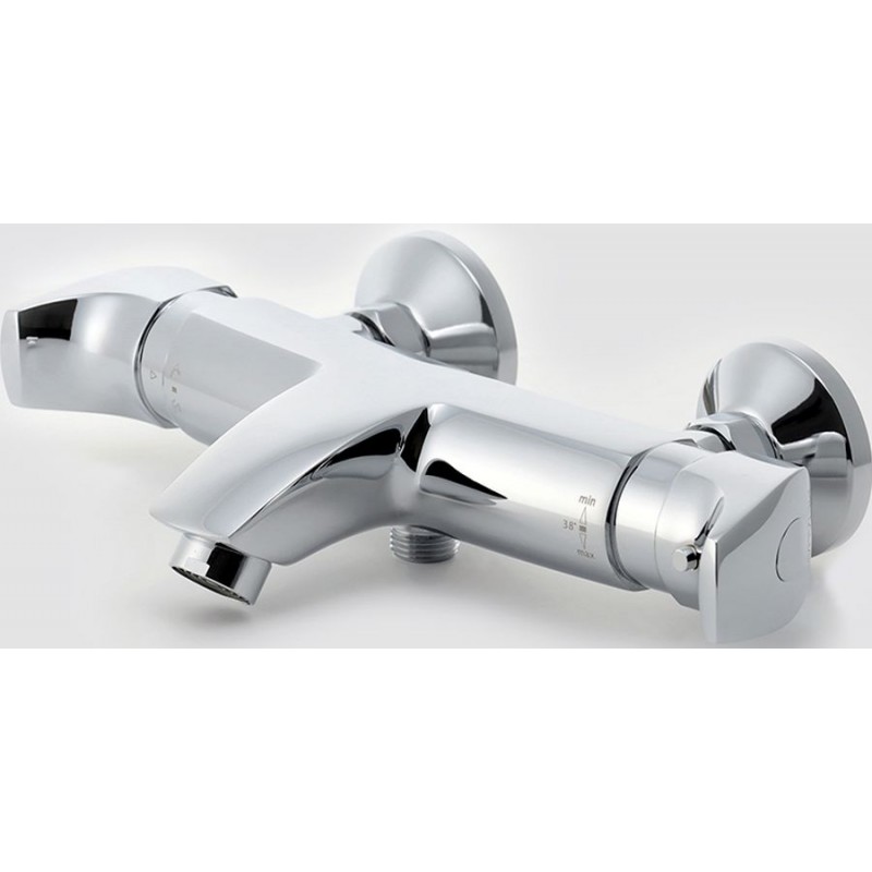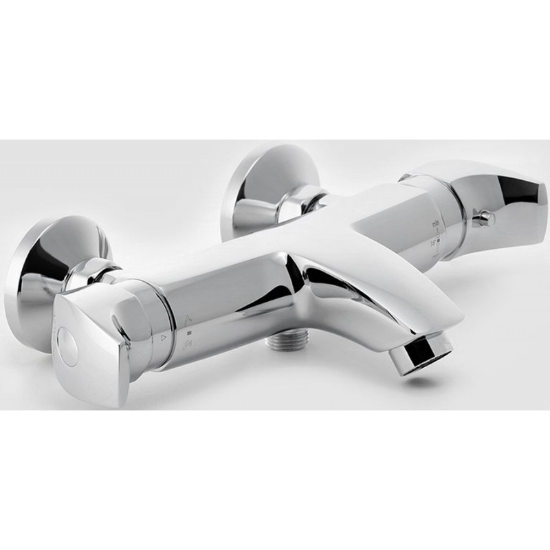 • Vanová termostatická baterie s roztečí 150 mm a přepínačem na levé rukojeti.