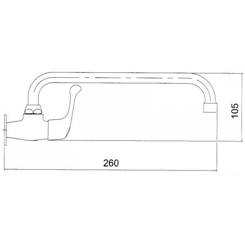 • Umyvadlová nástěnná baterie pouze na studenou (smíšenou) vodu s otočným trubkovým ramínkem s horním vývodem vody a celkovou délkou 260 mm.