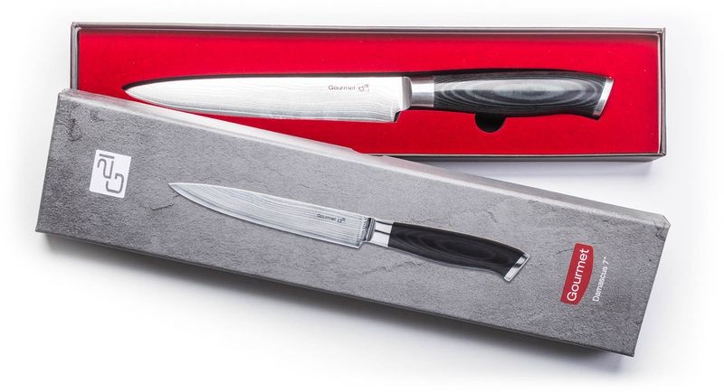 Nůž G21 Gourmet Damascus 17 cm 60022166Nože z damaškové oceli v kuchyni? Ano, je to skvělá volba. Damascénská ocel má jednak vyšší tvrdost a odolnost vůči opotřebení, díky vzácné a unikátní kresbě oceli navíc získáte jedinečnou kombinaci krásy a luxusu s vynikajícími řeznými vlastnostmi.