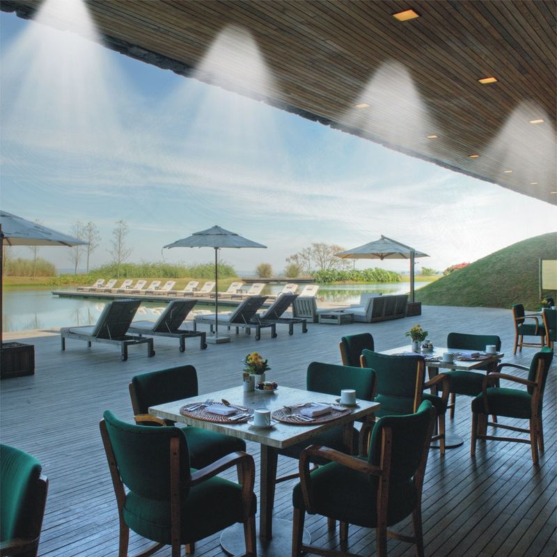 Pravdou je, že pod pergolou i pod slunečníkem je v parných letních dnech přehřátý a suchý vzduch. Zvýšením vzdušné vlhkosti se pocitová teplota může snížit až o 10 stupňů.