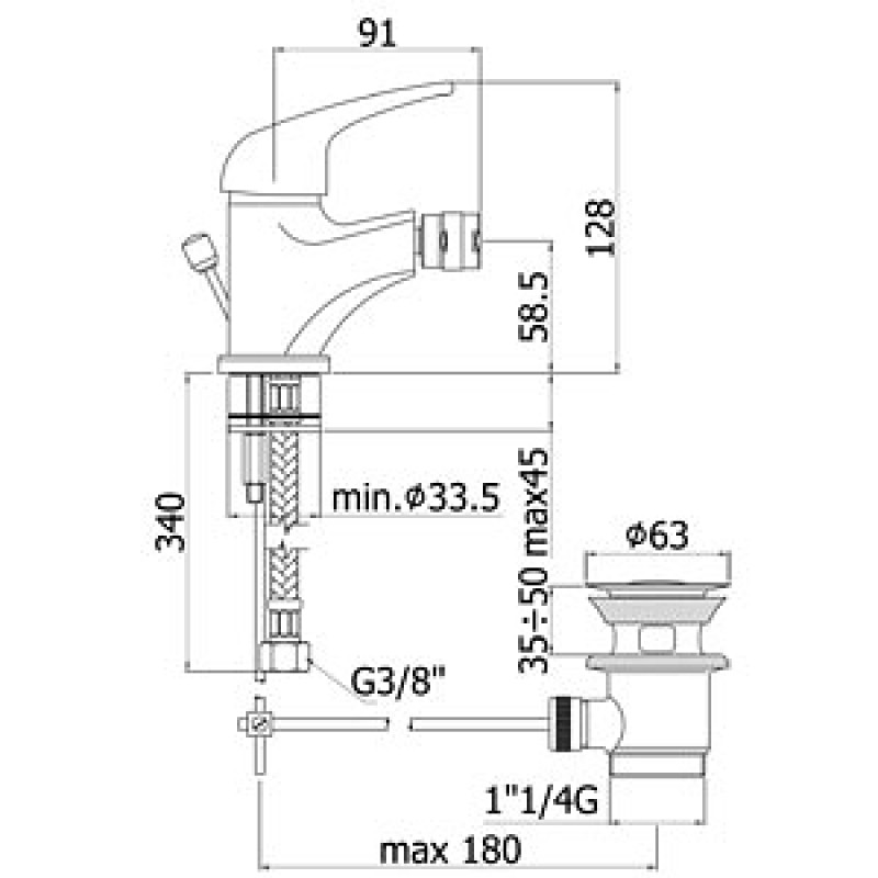 PAFFONI APOLLO baterie páková bidetová stojánková, chrombidetová stojánková s automatickou výpustí 5/4"