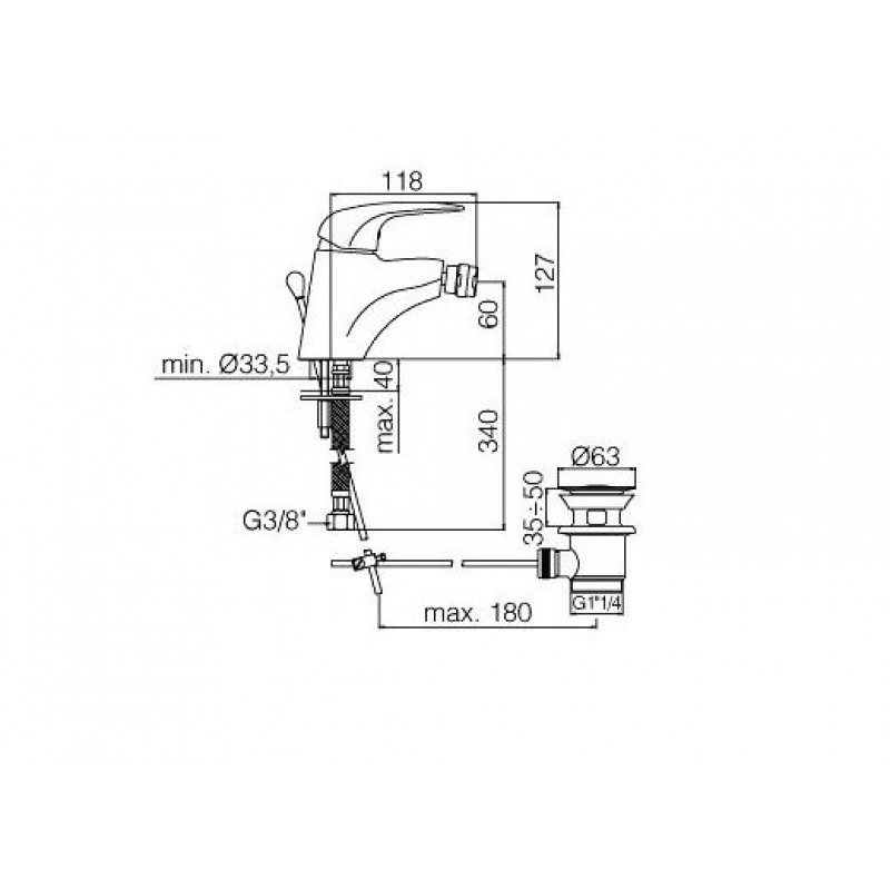 PAFFONI DUEMILA baterie chrom bidetová stojánková s výpustí DU135