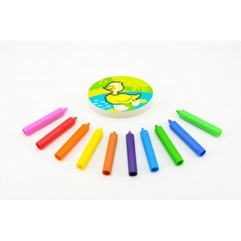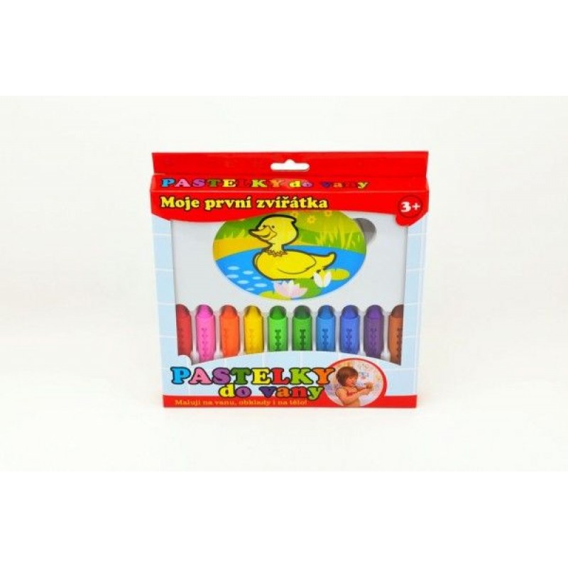 Pastelky do vany Moje první zvířátka 10 ks s houbičkouKoupání může být velká zábava. S pastelkami do vany se vaše koupelna promění každý den v jiný svět. Malují na vanu, obklady i na tělo a děti si s nimi užijí moře legrace. Mohou vytvořit hotová umělecká díla a maminky se nemusí obávat, protože tyto pastelky jdou lehce smýt. Jsou zcela bezpečné, netoxické a hypoalergenní. Sada obsahuje 10 pastelek a houbičku s motivem kačenky. Na zadní straně krabičky jsou zobrazeny předlohy pro malování zvířátek. Pastelky rozvíjejí jemnou motoriku, podporují dětskou fantazii. S pastelkami do vany Moje první zvířátka budou vaše děti koupání milovat.