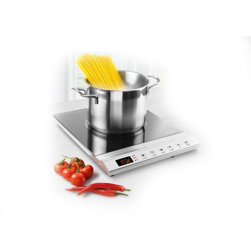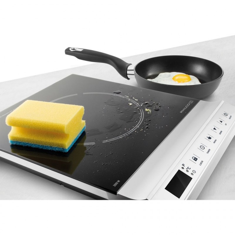 PHILCO PHCP 1620 indukční vařičIndukční vařič PHILCO PHCP 1620 z vysoce odolné sklokeramické desky. Vysoká efektivita indukčního ohřevu využije až 90 % energie což znamená rychlejší ohřev a úsporu nákladů. Vařič má 10úrovní ohřevu a to buď v režimu 60°C – 240°C nebo 120 W – 2000 W. Deska vařiče není jen odolná, ale zároveň se velmi pohodlně udržuje čistá. Vhodné na kuchyňské nádobí s průměrem 12 – 26 cm. Časovač nastavitelný 0 – 180 minut. Bezpečnost přístroje je zajištěna prvky ochrany proti přehřátí, dětského zámku a protiskluzovými nožkami. Dotykového ovládání a LED displej jsou pokryty UV ochrannou vrstvou pro dlouhou životnost přístroje. Vařič zobrazuje hlášky pro rychlou detekci problému. Detekce nevhodného nádobí.
