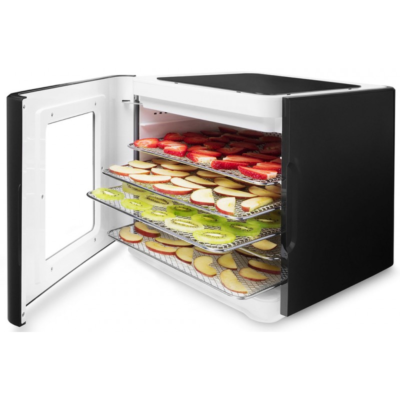 • 6 nerezových plat o velikosti 30x25 cm zajistí dostatečný prostor pro vaše sušení. Součástí sušičky je pak i vyjímatelný tácek na zbytkovou vodu a případný nepořádek, který vznikne na dně během sušení. Je jednoduché jej vyjmout, umýt a opět umístit pro další várku.