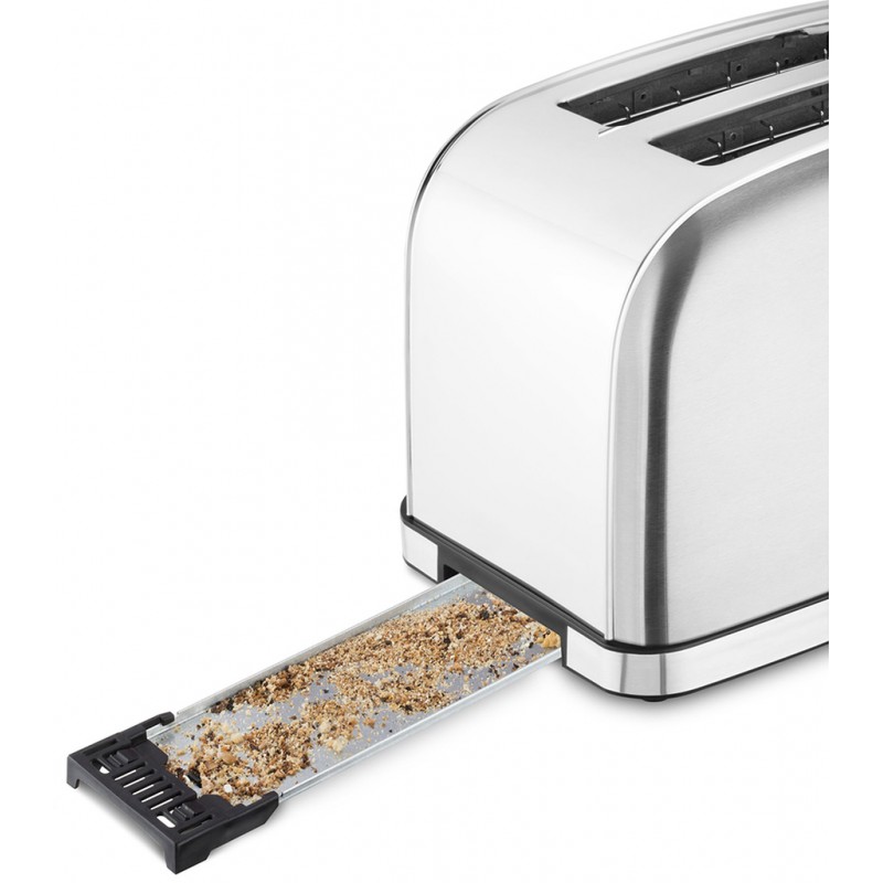 • Potěší vás také funkce OHŘÁTÍ, ROZMRAZENÍ nebo PŘERUŠENÍ. • Vysoký zdvih je pohodlný pro jednoduché a bezpečné vyndání toustu. • Tácek na drobky vám pak pomůže udržet toustovač snadno čistý.