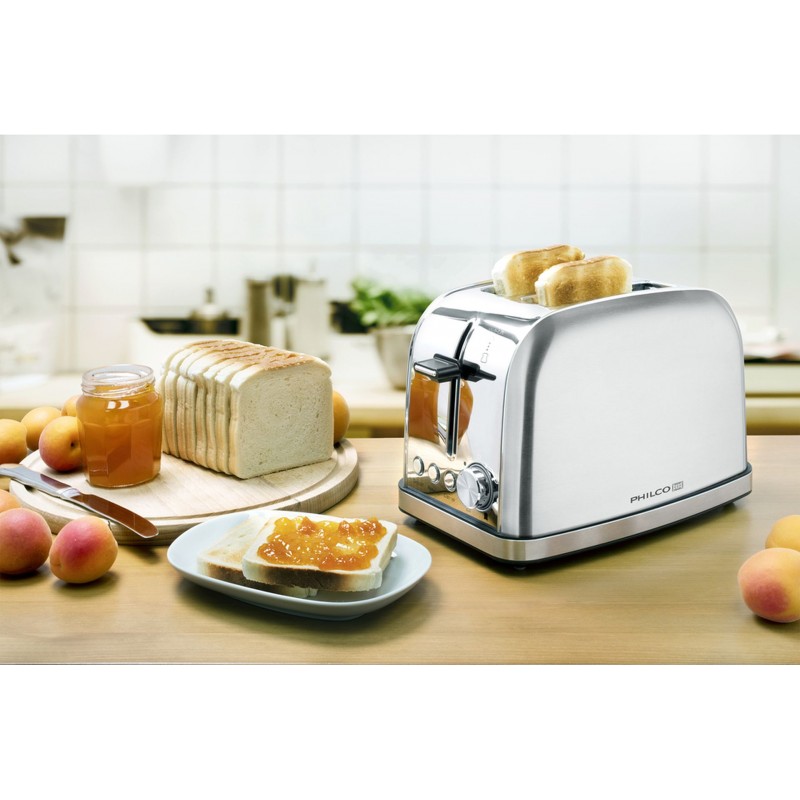 • Toustovač PHILCO PHTA 4006 vám pomůže obohatit vaši každodenní snídani. Díky širokým otvorům není problém také opéci normální evropský chléb and s funkcí centrování je váš krajíc vždy rovnoměrně propečený bez závislosti na tom jak je široký.