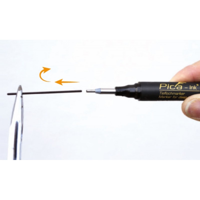 Pica Ink je originální popisovač pro hluboké otvory. Jeho rychleschnoucí inkoust píše prakticky na jakýkoli suchý povrch a jeho dlouhý hrot je ideální pro značení hlubokých otvorů.