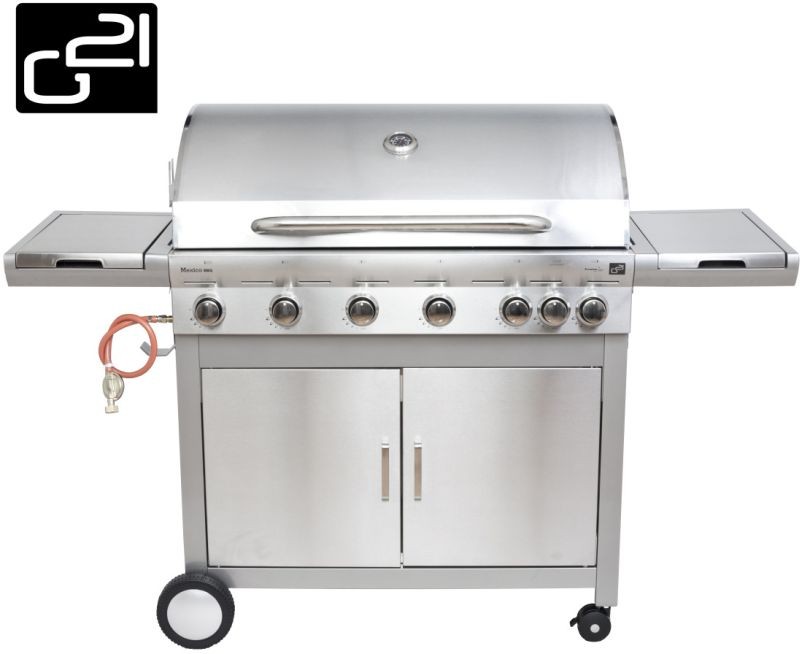 Plynový gril G21 Mexico BBQ Premium Line je vybaven systémem Flame Tamer, 6 hlavními nerezovými hořáky + jedním bočním hořákem s elektrickým zapalováním a plynovou regulací.V dnešní době se grilování a pořádání grilovacích garden party těší v České republice velké oblibě. Kromě klasického grilování na dřevěném uhlí je velmi rozšířené grilování právě na plynovém grilu. Grilování na plynových grilech je moderním a hlavně praktickým řešením, které neztrácí na kráse grilování.