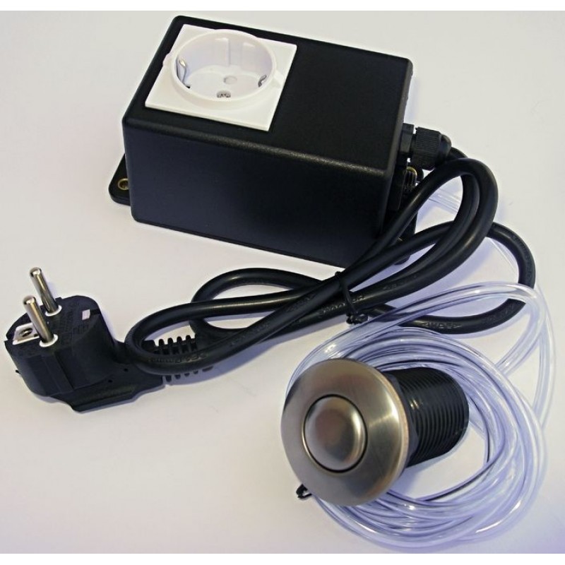 Pneumatický spínač komplet, matný nerez 001010258Pro jednoduché, pohodlné a zároveň bezpečné ovládání drtiče. Tato varianta je nejpoužívanější, jelikož drtič se zapíná a vypíná vždy v součinnosti s vodou, a takto může být tlačítko umístěno v bezprostřední blízkosti baterie tzv. po ruce. Pneumatický spínač je určen pro drtiče bez vestavěného vzduchového spínače jako jsou: General, EcoMaster Commercial, Waste King a Waste Maid...