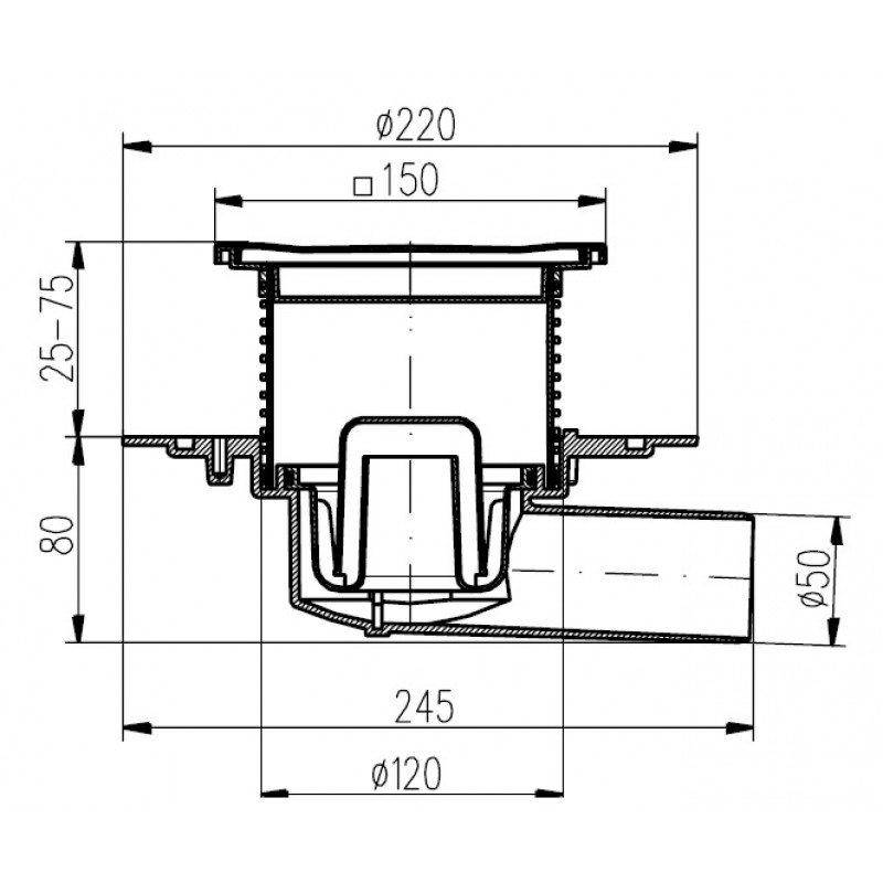 Podlahová vpusť boční PVBU50PR4 univerzální s přírubou 381F