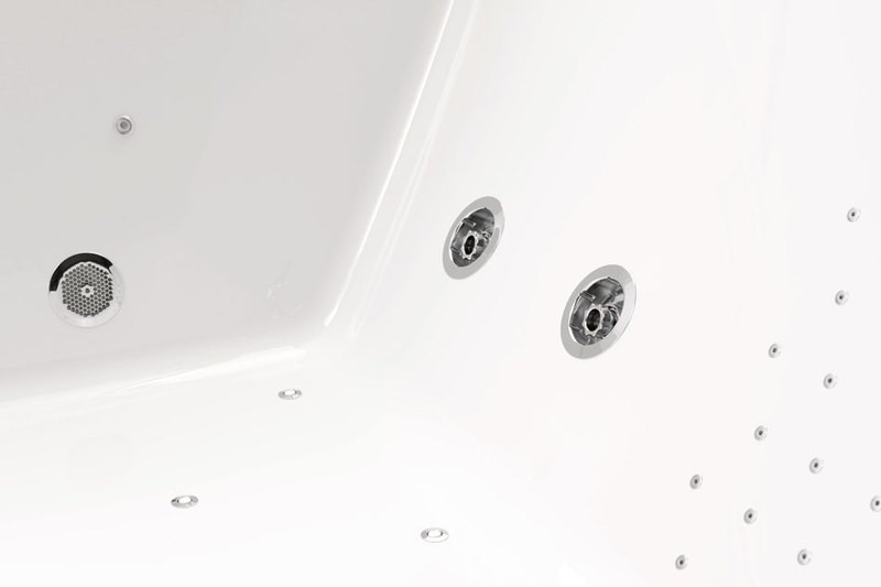 Masážní systém, instalovaný ve dně vany vám nabízí dva druhy masáže (vodní a vzduchovou). Vlastní hydromasážní systém je pak rozvržen plošně do tří různých typů masáže, přičemž každá z těchto masáží je osazena jiným typem trysek typu FLAT s nezávislým ovládáním.