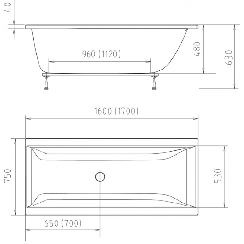 POLYSAN CLEO obdélníková vana 170x75x48cm, bílá 04611