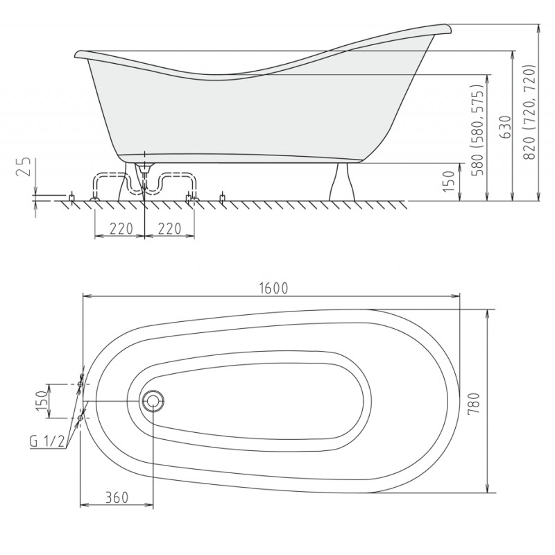 POLYSAN Vana RECTIME 160 volně stojící, nohy bronz- rozměry: 160x73x44 cm