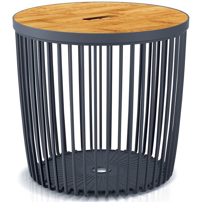 Prosperplast CLUBO Univerzální koš / stolek s bambusovým víkem 38,6cm, antracit ICLU35T