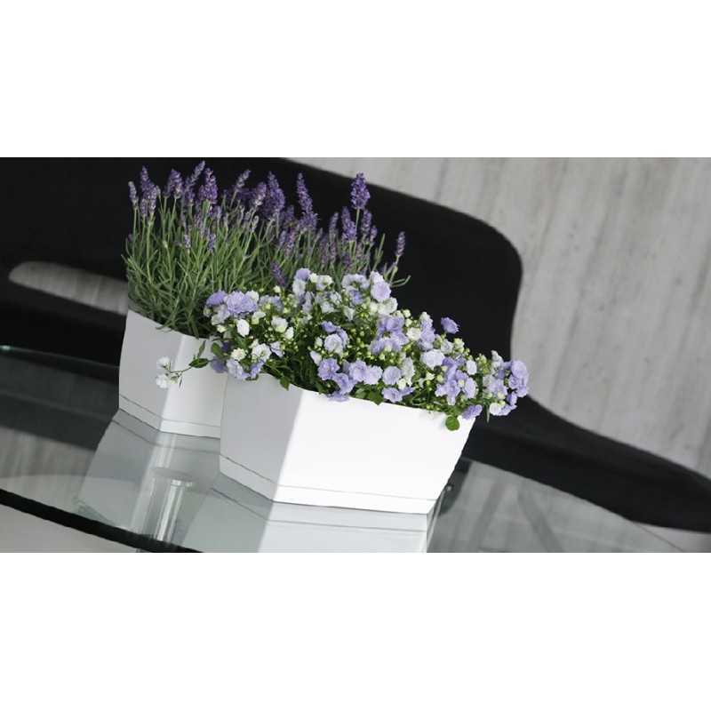 Truhlík s miskou je originální a moderní s lesklým povrchem.Vhodný pro celoroční venkovní i vnitřní použití, na balkón, okenní parapety, terasu či zahradu. Je vyrobený z vysoce kvalitního, lehce omyvatelného materiálu, odolný vůči mrazu a povětrnostním vlivům.