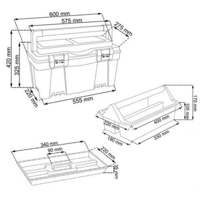 Box na nářadí z řady Firebird má vnitřní odnímatelnou přihrádku a 2 nebo 3 průhledné organizéry na víku. Díky širokému, profilovanému držadlu a dvěma pevným, hliníkovým zámkům v něm můžete přenášet nářadí vážící od 12 do 27 kg. Je vyroben z vysoce kvalitního plastu, který se vyznačuje vysokou pevností a odolností vůči mechanickému poškození.Parametry: