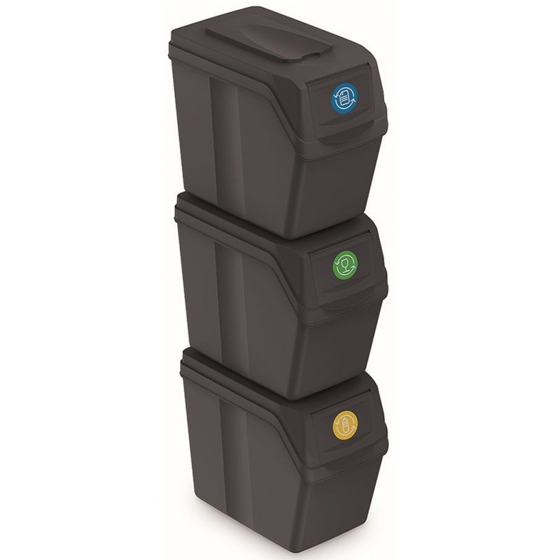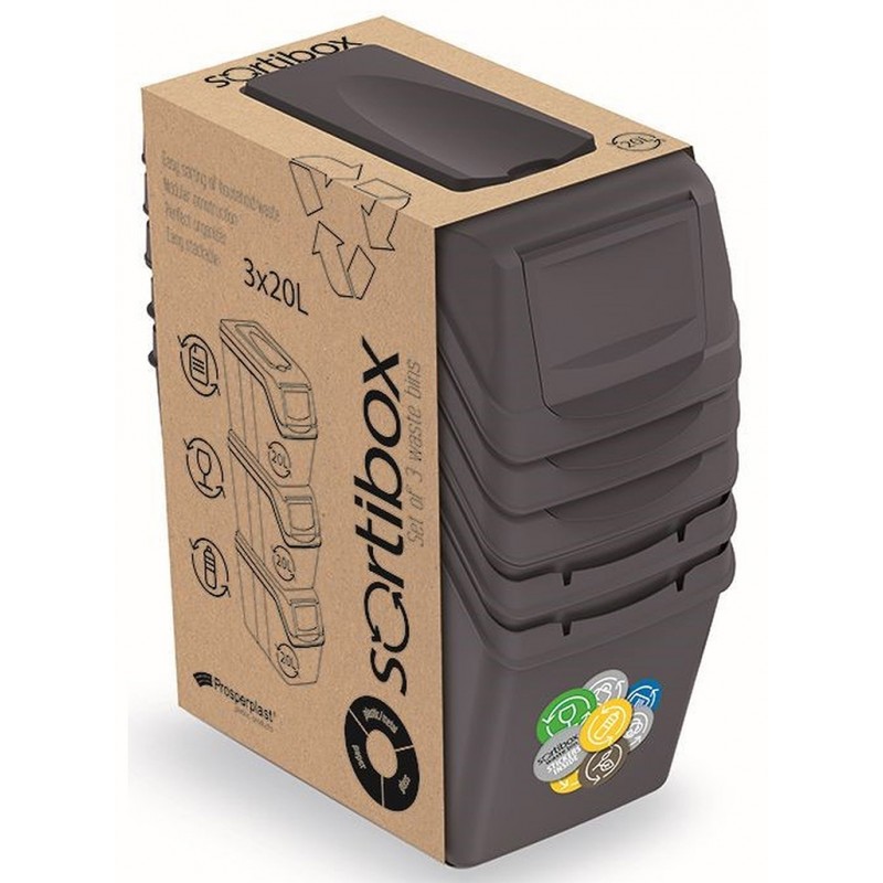 Prosperplast SORTIBOX I Sada 3 odpadkových košů 3x20l, antracit ISWB20S3