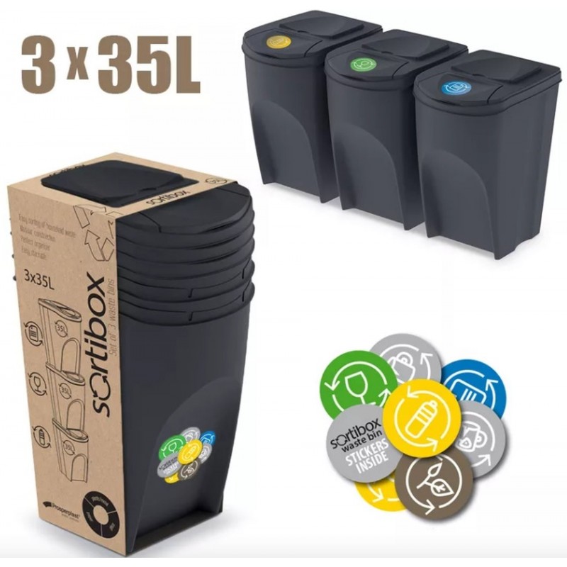 - Aby wysłać do Polski odwiedź Prosperplast SORTIBOX Zestaw 3 pojemników do segregacji 3x35l, szary IKWB35S3