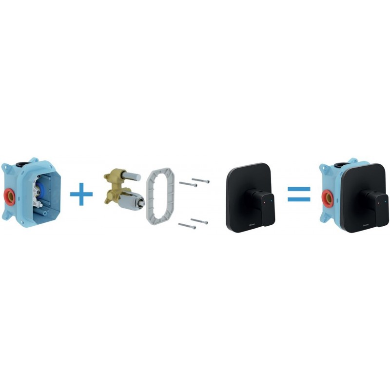 Základní těleso pro podomítkové baterie R-Box RB 070.50 není součástí baterie, je nutné jej dokoupit. R-Box obsahuje materiál pro přichycení ke stěně, nezahrnuje přípojky pro vedení vody ani jiný vodoinstalační materiál. R-box obsahuje pracovní plastový krycí díl vnitřního těla baterie uloženého v R-Boxu, který i při demontáži vrchního dílu baterie zachovává rozvod vody v koupelně plně funkční.