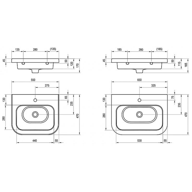 Umyvadlo Chrome 550• v rozměru 550 x 470 mm