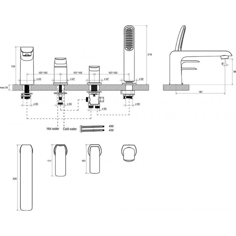 Stojánková čtyřotvorová baterie Flat je vhodná k instalaci do okraje vany. Produkt se skládá ze čtyř designově sladěných komponentů. Pozvolné linie napouštěcího ramena souzní s proudem vody. Baterie s citlivým ovládáním páky poskytuje dokonalou regulaci proudu i teploty vody. Třetí komponent se zase spolehlivě postará o pohodlné přepínání proudu vody mezi napouštěním vany a sprchováním. V posledním otvoru se skrývá trendy vytahovací ruční sprcha.