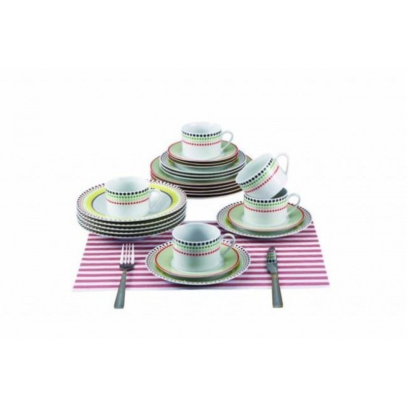 RENBERG Jídelní sada talířů 30 ks / barevné tečky /-30-dílná sada