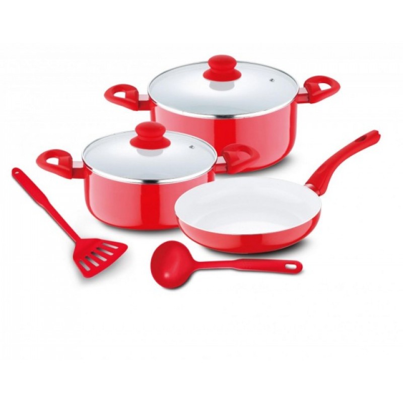 RENBERG Sada nádobí s keramickým povrchem 7 ks, červená RB-1196cerv