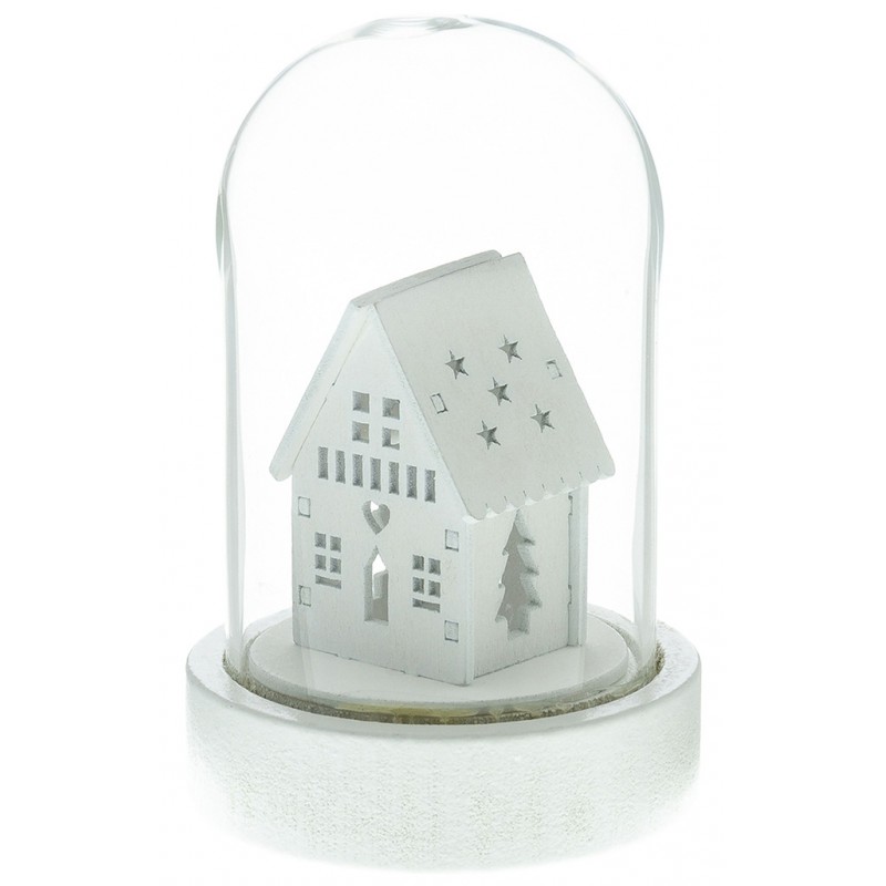 - Vánoční skleněná kopulka s dřevěným dekorem- 1 LED