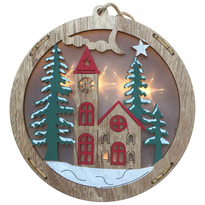 - Vánoční dekorace - kostelík z dřevěné překližky- 3D světelný efekt pozadí