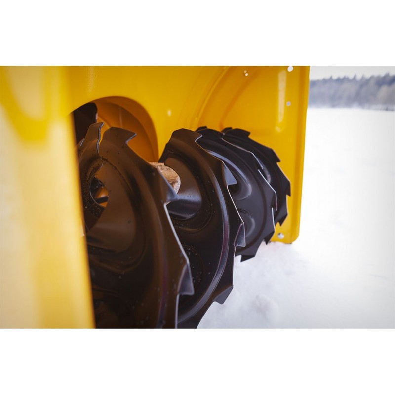 • motor se speciální zimní úpravou a elektrostartérem je osazen kvalitními konstrukčními materiály a komponenty, které zajišťují bezproblémové zimní starty a dlouhou životnost i v tvrdých zimních podmínkách silný motor, vysoký bunkr, ozubený šnek, výkonný vyhazovací ventilátor a široký plastový výhozový komín dobře zvládnou práci i ve zledovatělém nebo mokrém sněhu