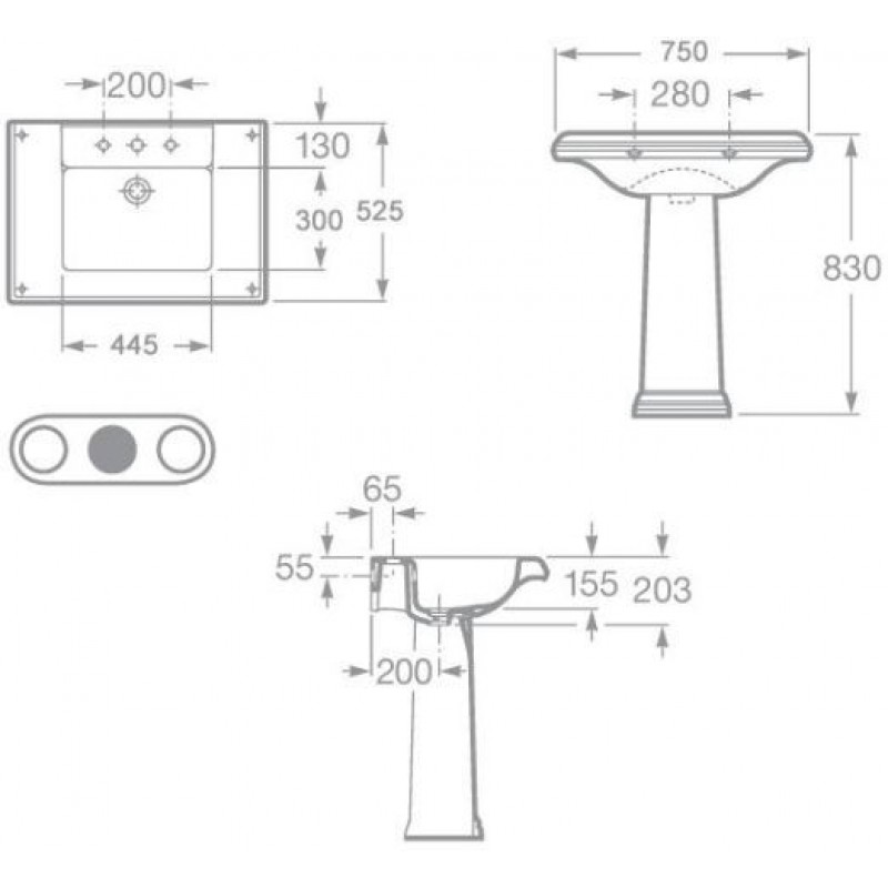 Roca America umyvadlo 75 x 52cm 7327490000Rozměry umyvadla: