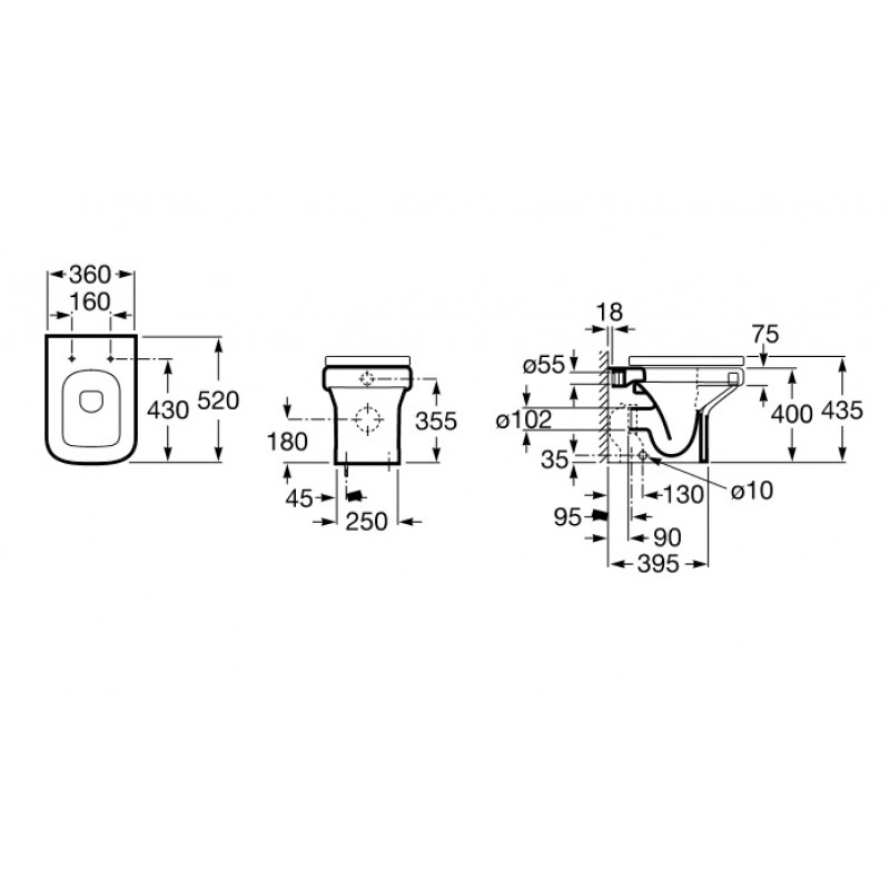 Roca Dama samostatně stojící mísa, hluboké splachování, vario odpad 7347787000Rozměry: