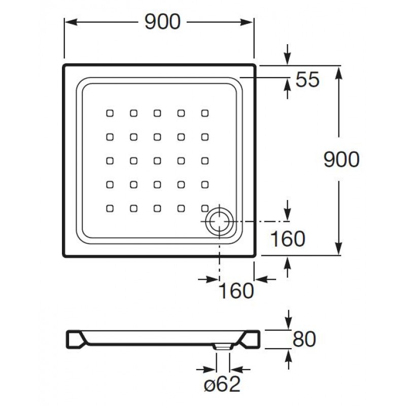 Roca Easy akrylátová sprchová vanička čtvercová 90 x 90 cm, bílá 7374790000Rozměry: