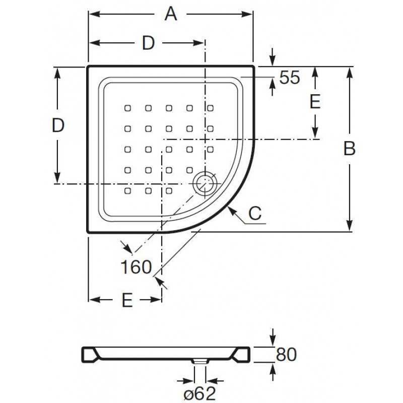 Roca Easy Angular akrylátová sprchová vanička čtvrtkruhová 75 x 75 cm, bílá 7374795000Rozměry: