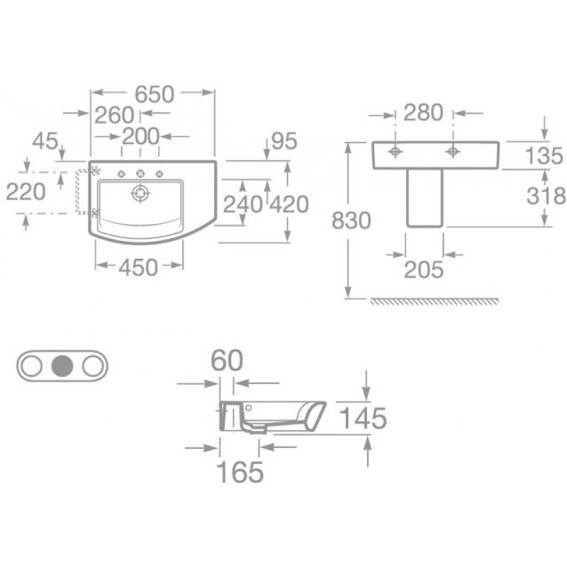 Roca Hall asymetrické umyvadlo 65 x 42 cm 7327620000Rozměr výrobku: