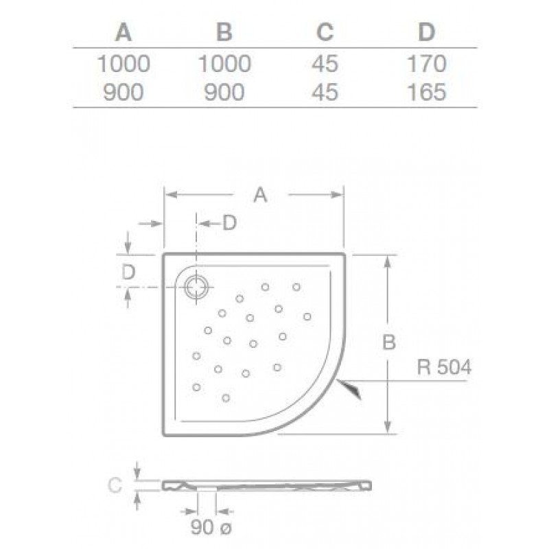 Roca Malta keramická sprchová vanička čtvrtkruhová 100 x 100 x 4,5 cm, bílá 7373511000Rozměry: