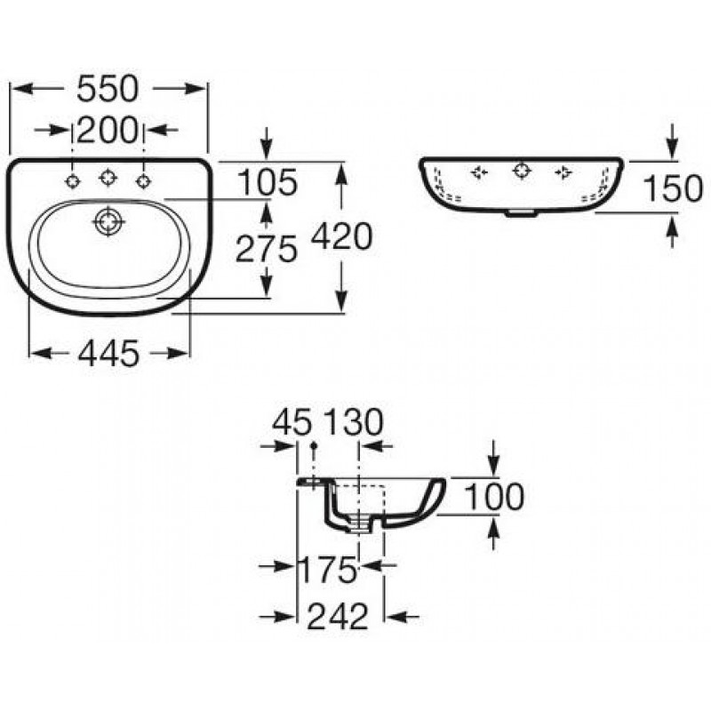 Roca Meridian polozápustné umyvadlo 55 x 42 cm, maxiClean 732724S00MRozměry výrobku: