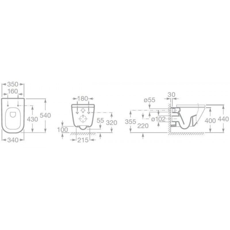 Roca The Gap závěsný klozet, hluboké splachování, maxiClean 734647700MRozměry výrobku: