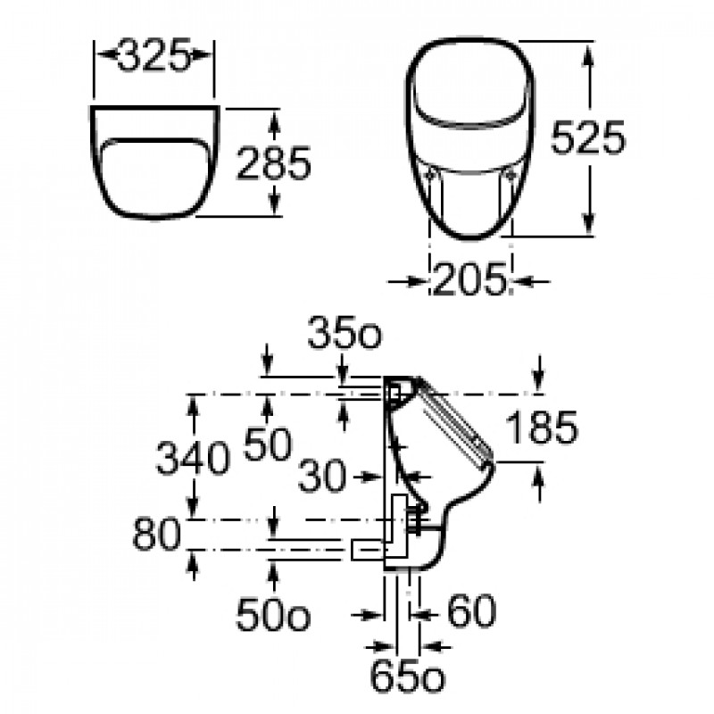 Roca Urinett pisoár / urinál bez poklopu A359093005* odpad vodorovný