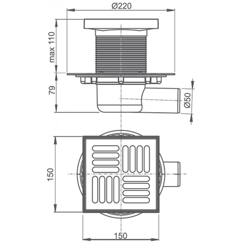 Roltechnik podlahová vpusť 150×150 /50 CLASSIC 8100037