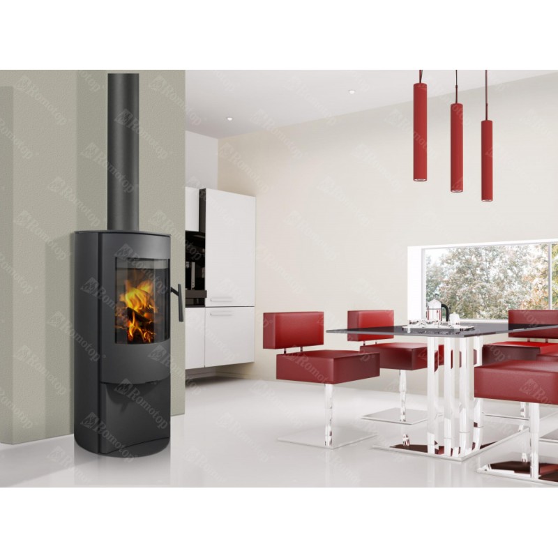 Romotop Alpera E03 krbová kamna, plech"Prostorově nenáročná kompaktní kamna s oblíbenou oválnou základnou".