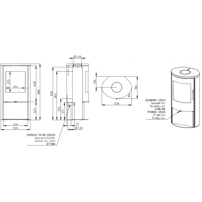 Průměr kouřovodu: 150 mm