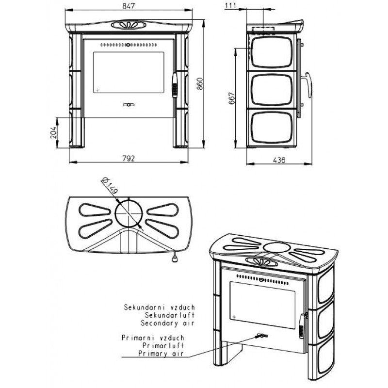 • široké topeniště pro dřevo až 50 cm