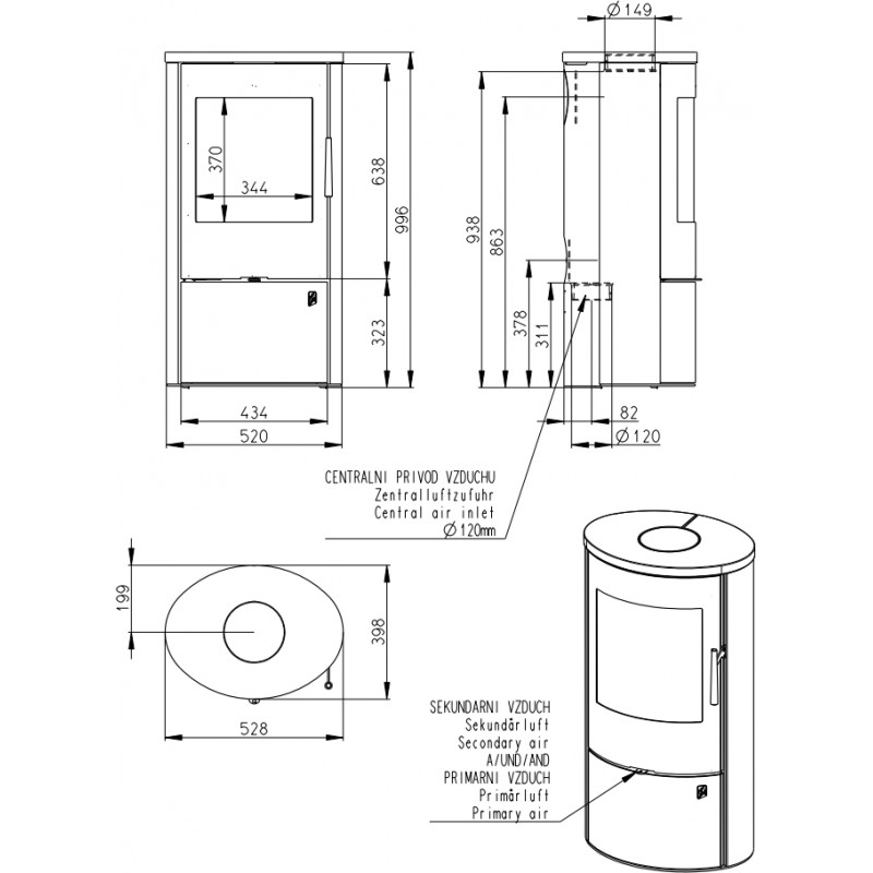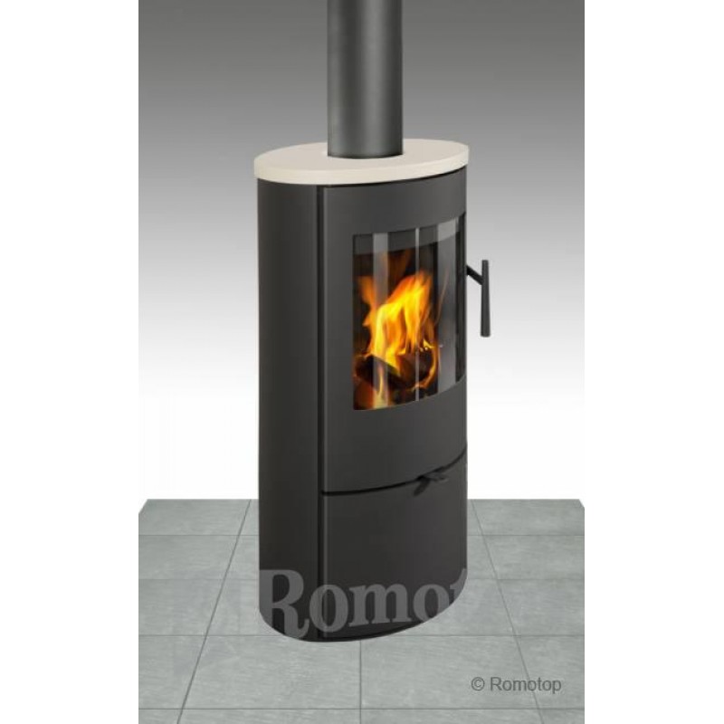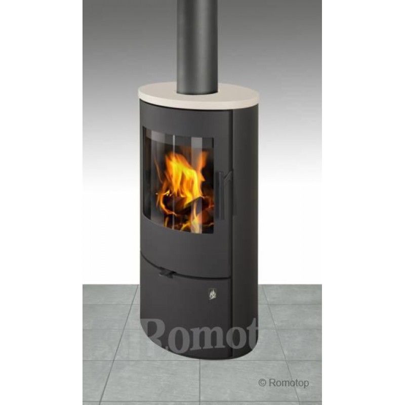 Romotop Evora 04 krbová kamna keramika + plech"Prostorově nenáročná kompaktní kamna s oblíbenou oválnou základnou".
